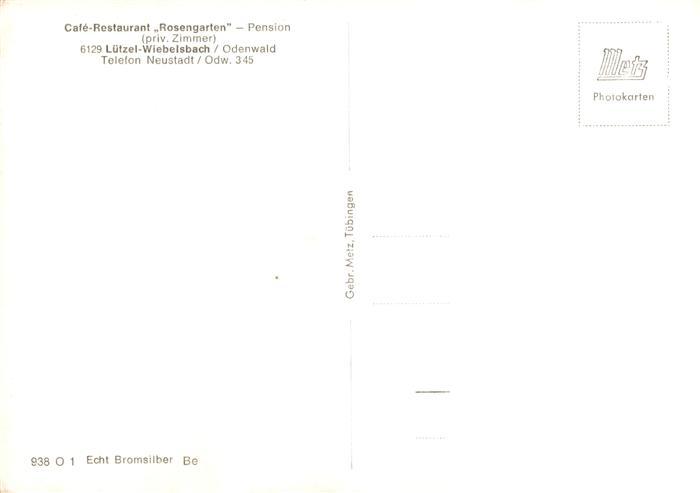 73876574 Luetzel-Wiebelsbach Cafe Restaurant Rosengarten Pension Gaststube Bar Kapelle postalisch nicht gelaufen Erhaltung siehe scans [FriedD77] KatCode: 11110006437010