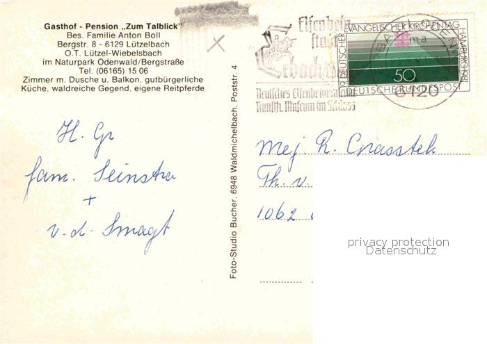 72655116 alte Postkarte Luetzel-Wiebelsbach Gasthaus Pension Zum Talblick postalisch gelaufen Erhaltung siehe scans [LiesaD40] KatCode: 11110006437010