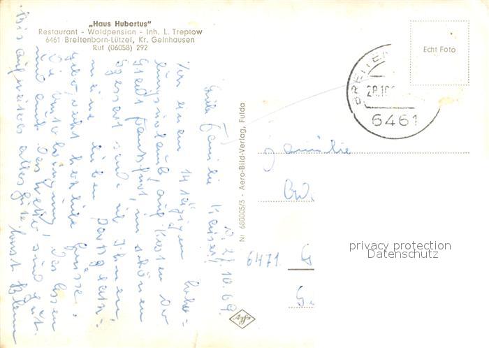 73117052 alte Postkarte Luetzel-Wiebelsbach Haus Hubertus Restaurant Waldpension postalisch gelaufen Erhaltung siehe scans [LiesaD40] KatCode: 11110006437010