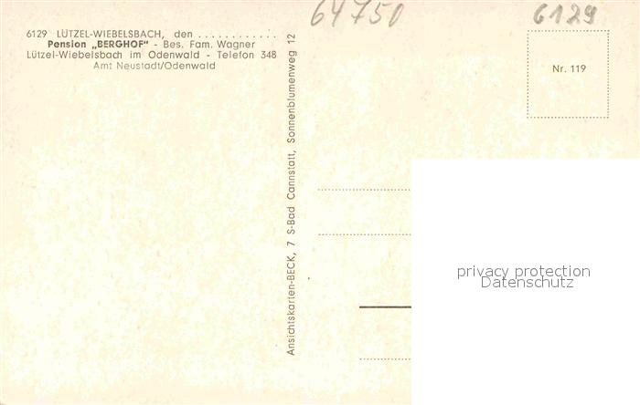32837684 Luetzel-Wiebelsbach Pension Berghof postalisch nicht gelaufen Erhaltung siehe scans [KathaD81] KatCode: 11110006437010