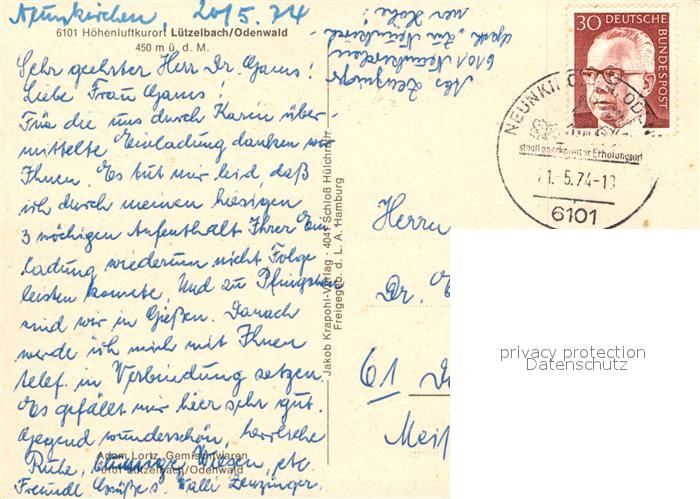 73540033 alte Postkarte Luetzelbach Odenwald Fliegeraufnahme postalisch gelaufen Erhaltung siehe scans [WerneD78] KatCode: 11110006437010