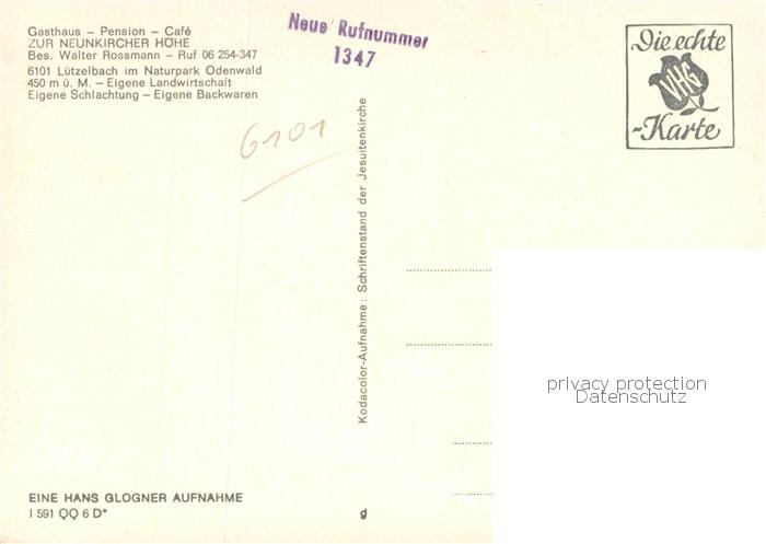 73785769 Luetzelbach Odenwald Gasthaus zur Neunkircher Hoehe Gaststube Garten postalisch nicht gelaufen Erhaltung siehe scans [WerneD78] KatCode: 11110006437010