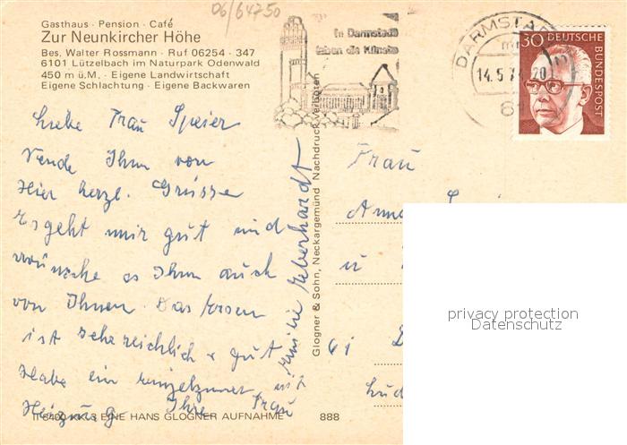 73730801 alte Postkarte Luetzelbach Odenwald Gasthaus zur Neunkircher Hoehe Landwirtschaft Viehweide postalisch gelaufen Erhaltung siehe scans [FriedD77] KatCode: 11110006437010