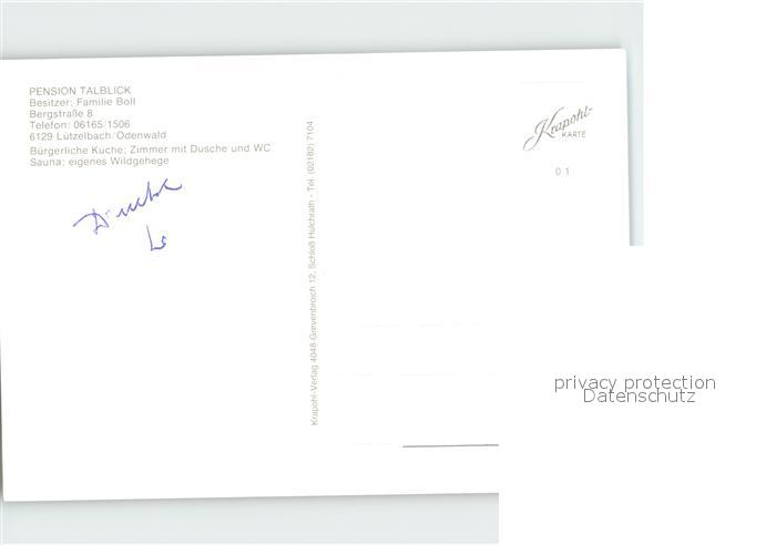 72259183 Luetzelbach Odenwald Pension Talblick Gastraum Panorama Wildgehege postalisch nicht gelaufen Erhaltung siehe scans KatCode: 11110006437010