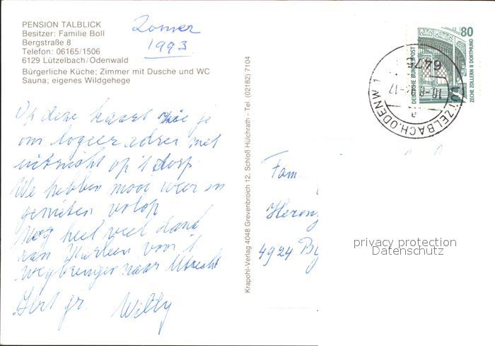 71936301 alte Postkarte Luetzelbach Odenwald Pension Talblick Reh postalisch gelaufen Erhaltung siehe scans KatCode: 11110006437010