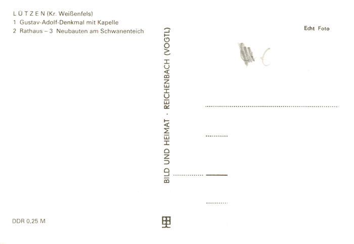 73907950 Luetzen Sachsen-Anhalt Gustav Adolf Denkmal mit Kapelle Rathaus Neubauten am Schwanenteich postalisch nicht gelaufen Erhaltung siehe scans [FriedD77] KatCode: 11110015084315