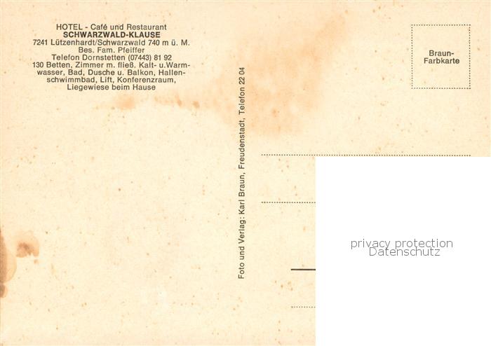 73771138 Luetzenhardt Hotel Cafe Restaurant Schwarzwald Klause postalisch nicht gelaufen Erhaltung siehe scans [WerneD78] KatCode: 11110008237074