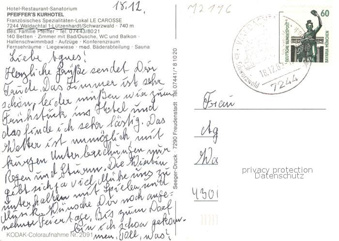 73323628 alte Postkarte Luetzenhardt Hotel Restaurant Sanatorium Pfeiffer’s Kurhotel im Winter postalisch gelaufen Erhaltung siehe scans [FriedD77] KatCode: 11110008237074