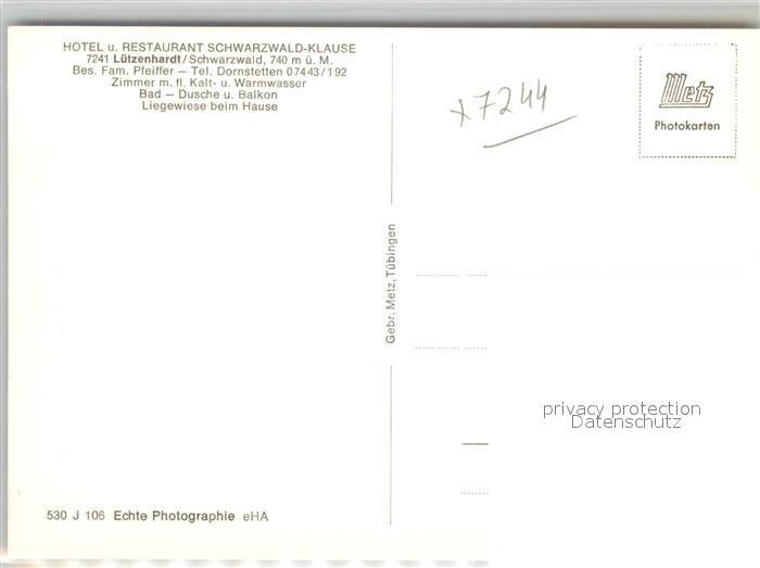 42971676 Luetzenhardt Hotel Schwarzwald Klause postalisch nicht gelaufen Erhaltung siehe scans [AndreD76] KatCode: 11110008237074
