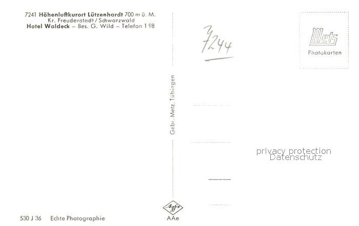 42969977 Luetzenhardt Hotel Waldeck postalisch nicht gelaufen Erhaltung siehe scans [AndreD76] KatCode: 11110008237074