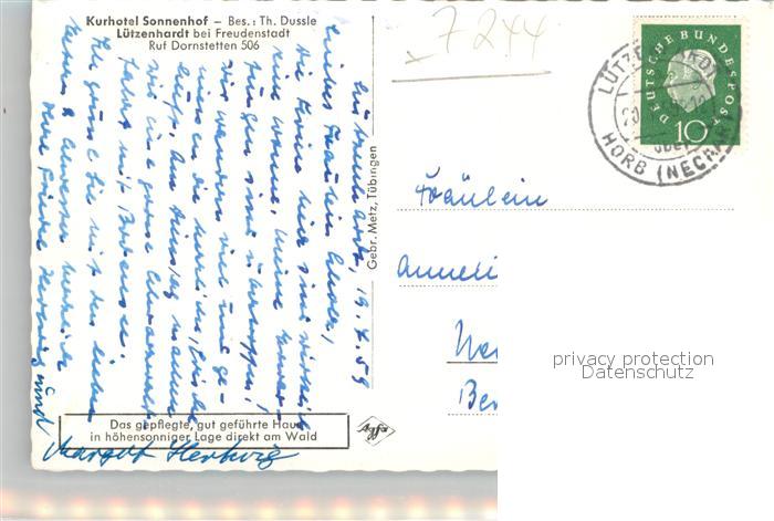 42970777 alte Postkarte Luetzenhardt Kurhotel Sonnenhof postalisch gelaufen Erhaltung siehe scans [AndreD76] KatCode: 11110008237074