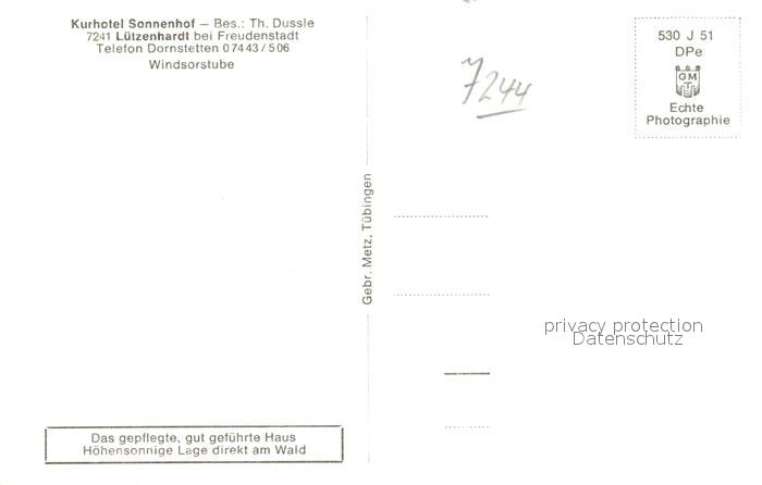 42970538 Luetzenhardt Kurhotel Sonnenhof Windsorstube postalisch nicht gelaufen Erhaltung siehe scans [AndreD76] KatCode: 11110008237074