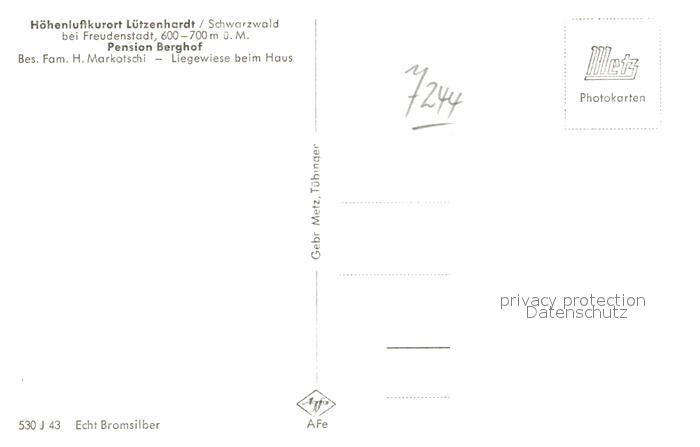 42969976 Luetzenhardt Pension Berghof Fremdenzimmer Panorama postalisch nicht gelaufen Erhaltung siehe scans [AndreD76] KatCode: 11110008237074