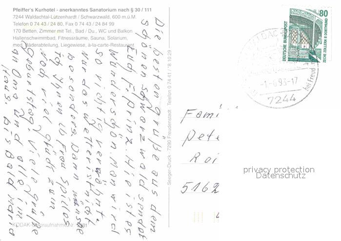 72904473 alte Postkarte Luetzenhardt Pfeiffers Kurhotel Sanatorium Schwimmbad postalisch gelaufen Erhaltung siehe scans [LiesaD40] KatCode: 11110008237074
