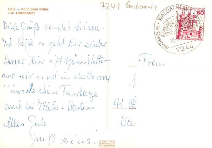 73894387 alte Postkarte Luetzenhardt Waldachtal BW Cafe Konditorei Bruenz postalisch gelaufen Erhaltung siehe scans [WerneD78] KatCode: 11110008237074