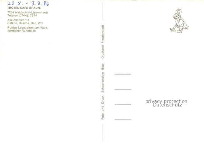 74026279 Luetzenhardt Waldachtal BW Hotel Café Braun Gastraum Fremdenzimmer postalisch nicht gelaufen Erhaltung siehe scans [FriedD77] KatCode: 11110008237074