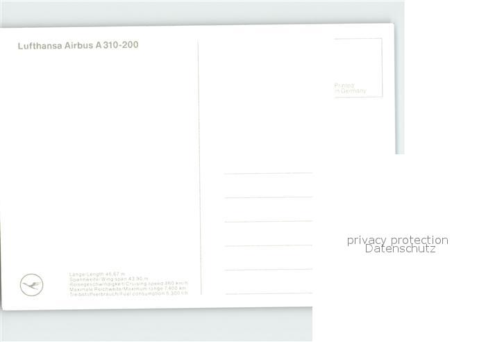 Lufthansa Airbus A 310-200 postalisch nicht gelaufen Erhaltung siehe scans