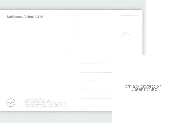 Lufthansa Airbus A 310 postalisch nicht gelaufen Erhaltung siehe scans