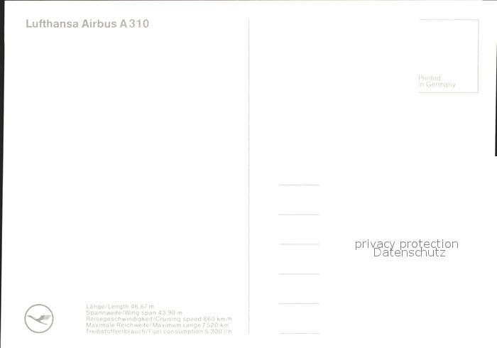 Lufthansa Airbus A 310 postalisch nicht gelaufen Erhaltung siehe scans