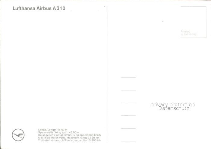 Lufthansa Airbus A310 postalisch nicht gelaufen Erhaltung siehe scans
