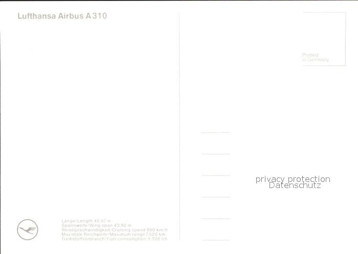 Lufthansa Airbus A310 postalisch nicht gelaufen Erhaltung siehe scans