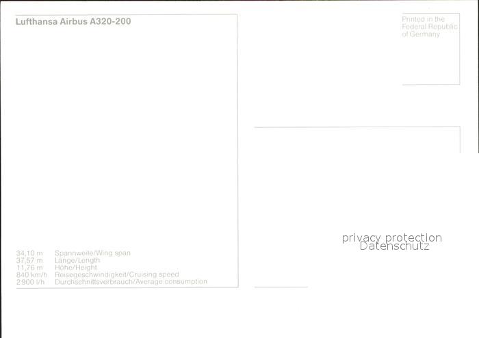 Lufthansa Airbus A320-200 postalisch nicht gelaufen Erhaltung siehe scans