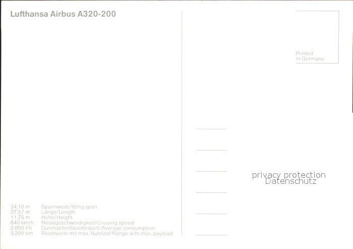Lufthansa Airbus A320-200 postalisch nicht gelaufen Erhaltung siehe scans