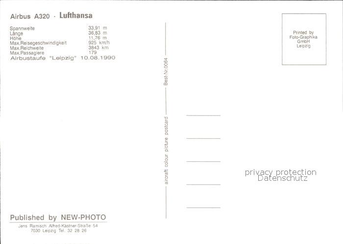 Lufthansa Airbus A320 Airbustaufe Leipzig postalisch nicht gelaufen Erhaltung siehe scans