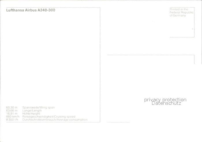 Lufthansa Airbus A340-300 postalisch nicht gelaufen Erhaltung siehe scans