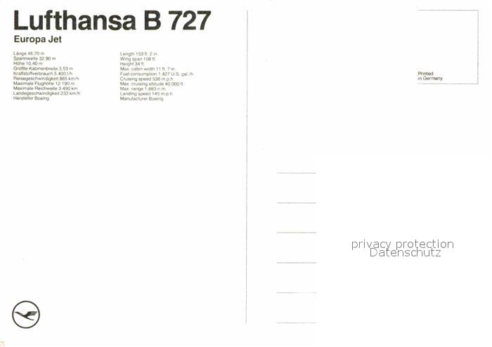 72866824 Lufthansa B 727 Europa Jet KatCode 22120000001300