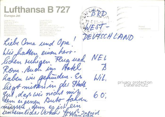 72318364 Lufthansa B-727 Europa-Jet KatCode 22120000001300