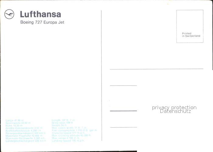 72534858 Lufthansa Boeing 727 Europa Jet KatCode 22120000001300
