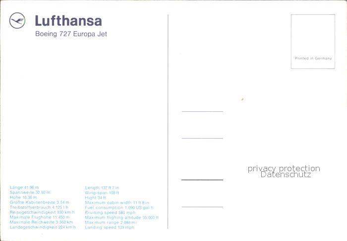 Lufthansa Boeing 727 Europa Jet postalisch nicht gelaufen Erhaltung siehe scans