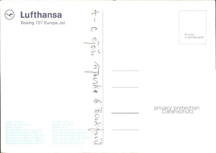 Lufthansa Boeing 727 Europa Jet postalisch nicht gelaufen Erhaltung siehe scans
