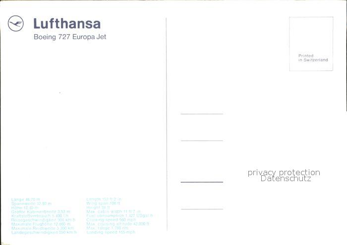Lufthansa Boeing 727 Europa Jet postalisch nicht gelaufen Erhaltung siehe scans
