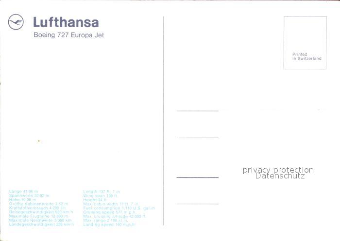 Lufthansa Boeing 727 Europa Jet postalisch nicht gelaufen Erhaltung siehe scans