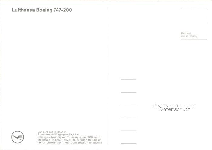 Lufthansa Boeing 747-200 postalisch nicht gelaufen Erhaltung siehe scans