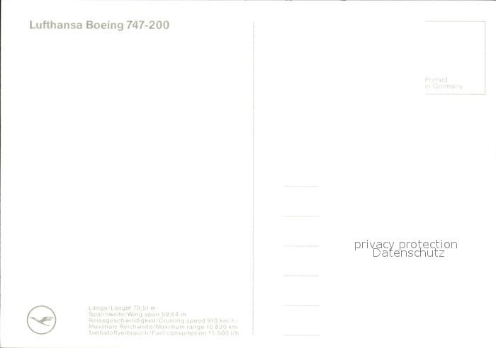 Lufthansa Boeing 747-200 postalisch nicht gelaufen Erhaltung siehe scans