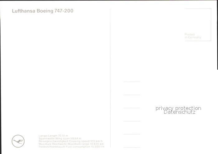 Lufthansa Boeing 747-200 postalisch nicht gelaufen Erhaltung siehe scans