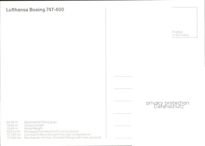 Lufthansa Boeing 747-400 postalisch nicht gelaufen Erhaltung siehe scans