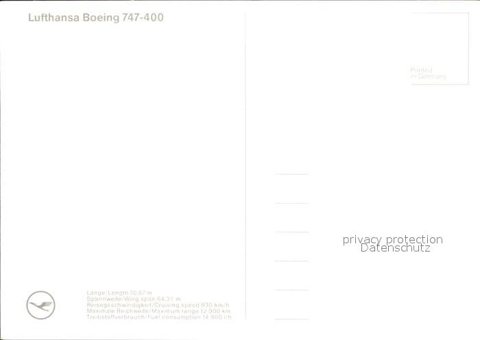 Lufthansa Boeing 747-400 postalisch nicht gelaufen Erhaltung siehe scans