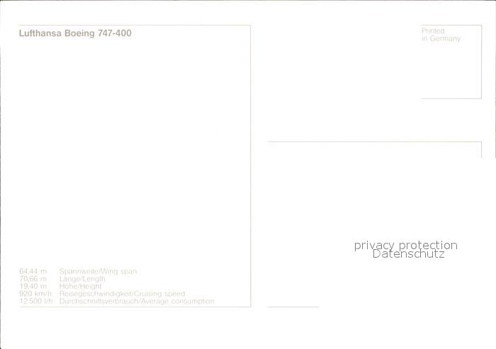 Lufthansa Boeing 747-400 postalisch nicht gelaufen Erhaltung siehe scans