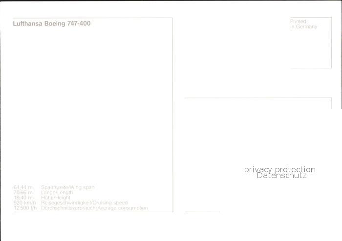 Lufthansa Boeing 747-400 postalisch nicht gelaufen Erhaltung siehe scans