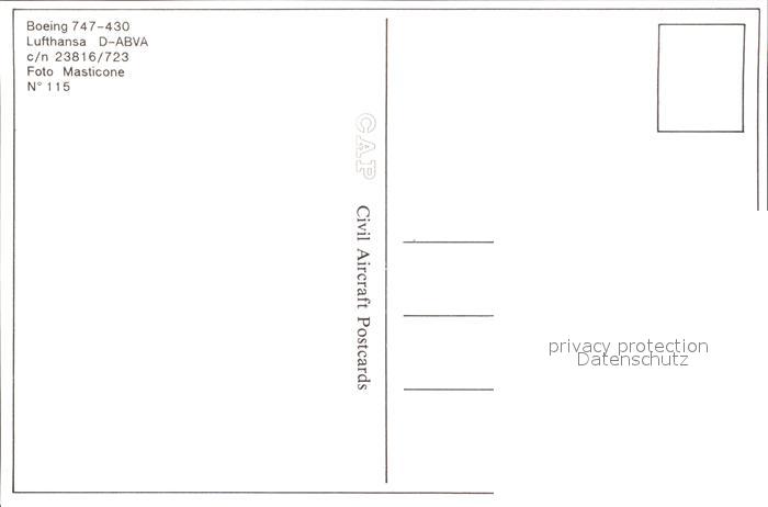 Lufthansa Boeing 747-430 D-ABVA c/n 23816/723 postalisch nicht gelaufen Erhaltung siehe scans
