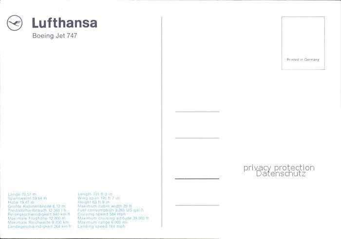 Lufthansa Boeing Jet 747 postalisch nicht gelaufen Erhaltung siehe scans