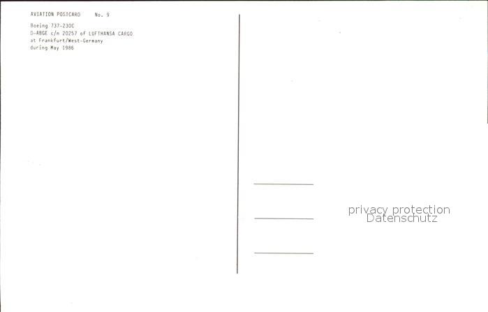 Lufthansa Cargo Boeing 737-230C D-ABGE c/n 20257 postalisch nicht gelaufen Erhaltung siehe scans