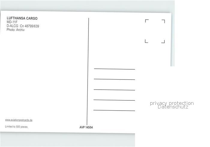 Lufthansa Cargo MD-11F D-ALCG Cn 487997639 postalisch nicht gelaufen Erhaltung siehe scans