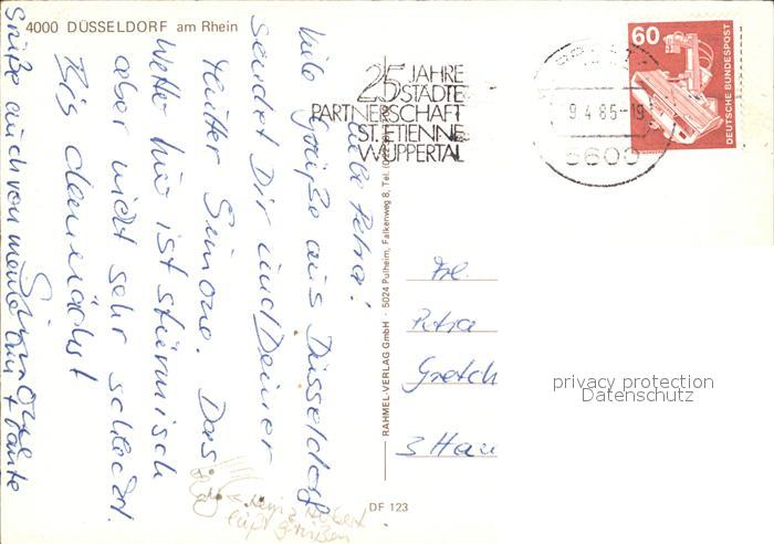alte Postkarte Lufthansa Duesseldorf Rheinturm Benrather Schloss postalisch gelaufen Erhaltung siehe scans