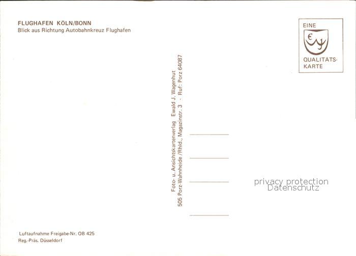 Lufthansa Fliegeraufnahme Flughafen Koeln/Bonn Autobahnkreuz postalisch nicht gelaufen Erhaltung siehe scans