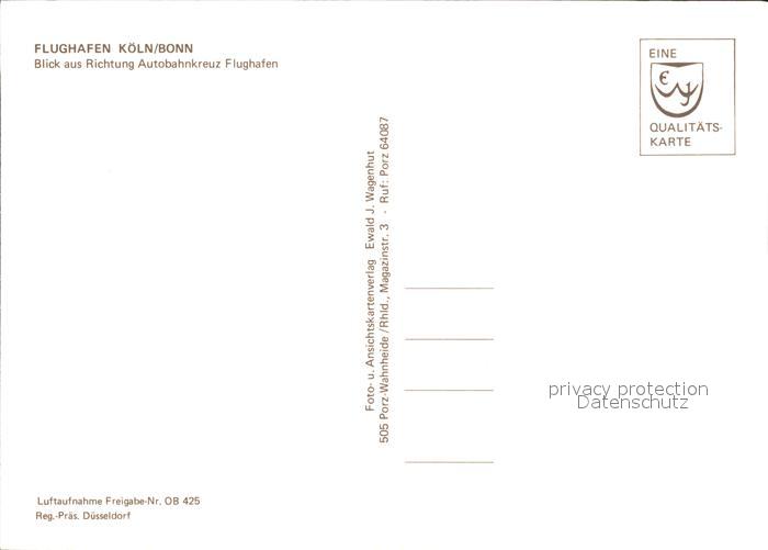 Lufthansa Flughafen Koeln-Bonn Autobahnkreuz Fliegeraufnahme postalisch nicht gelaufen Erhaltung siehe scans